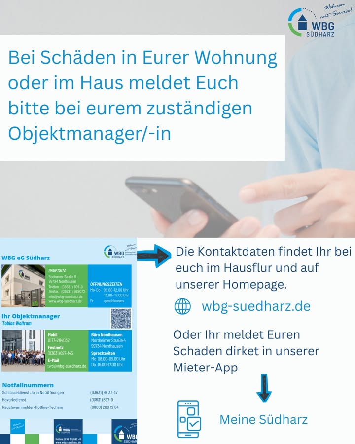 Herzlichen Dank an unsere zahlreichen „Meine Südharz“- Registrierungen! Über 2000 Mitglieder nutzen schon unsere WBG-Service-App und machen damit das Wohnen ein ganzes Stück einfacher. Euer WBG-Team ...