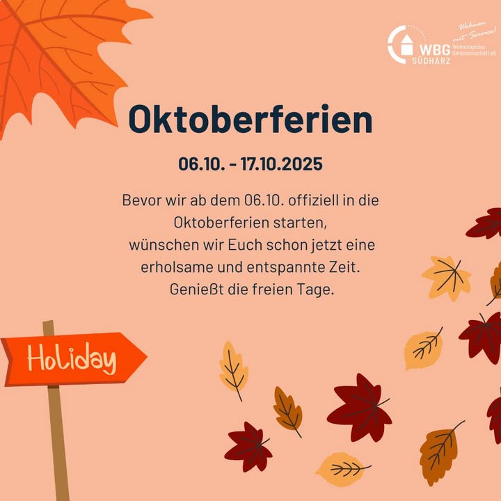 Bevor Ihr ab dem 06.10. in die Oktoberferien startet, wünschen wir Euch schon jetzt eine erholsame und entspannte Zeit!