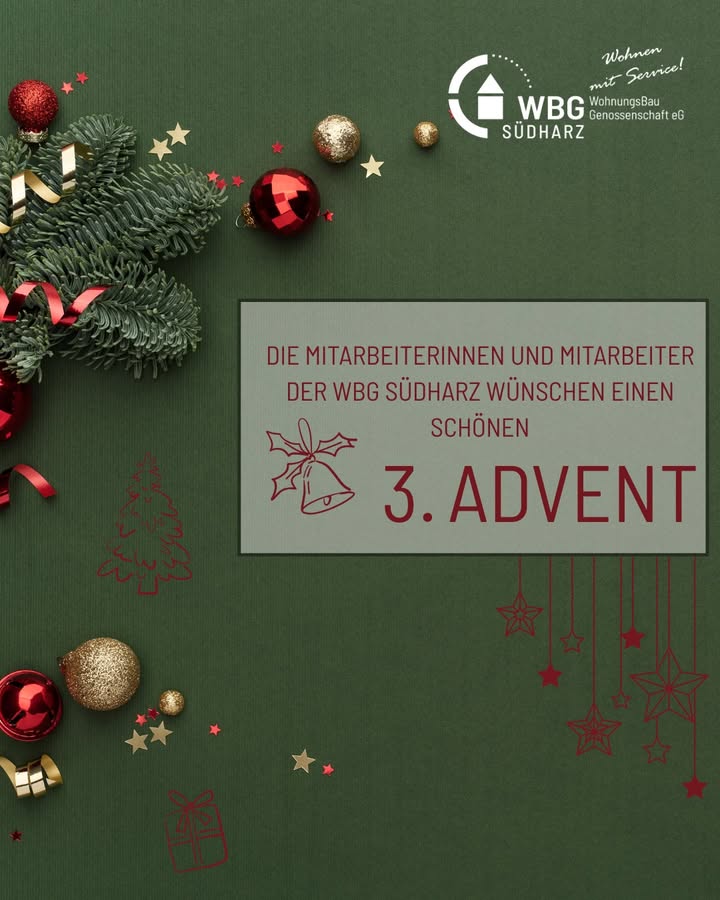 Wir wünschen Euch einen besinnlichen 3. Advent! #wohnen #wbgsuedharz #adventszeit ...