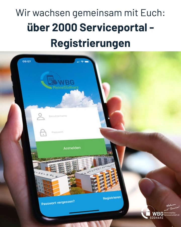 Herzlichen Dank an unsere zahlreichen „Meine Südharz“- Registrierungen! Über 2000 Mitglieder nutzen schon unsere WBG-Service-App und machen damit das Wohnen ein ganzes Stück einfacher. Euer WBG-Team ...